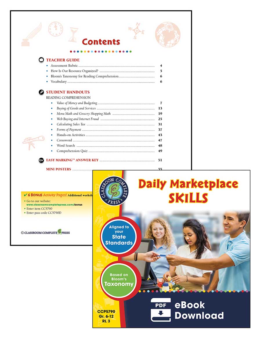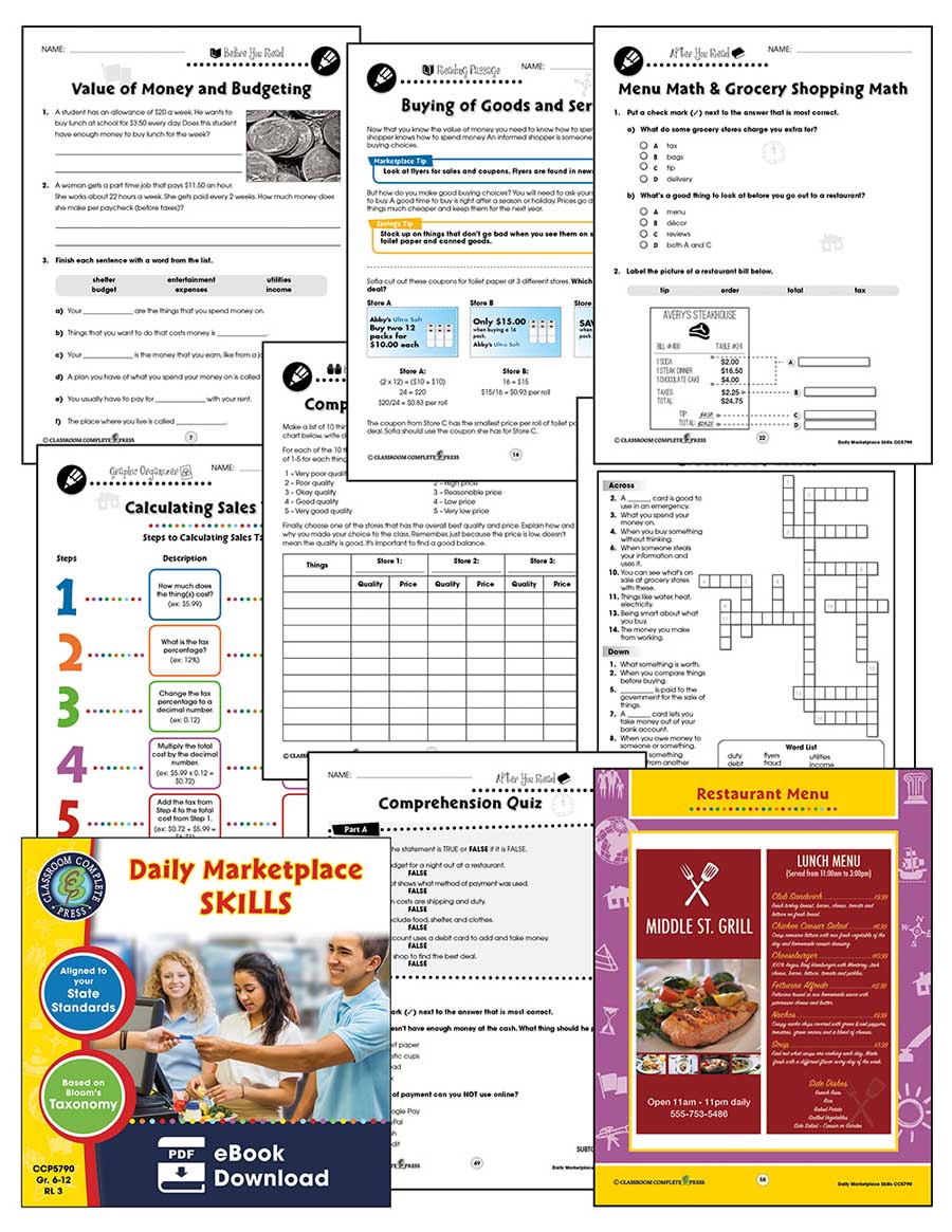 CC5790 Daily Marketplace Skills introduces students to the basics of managing money, with creating a budget and calculating sales tax.