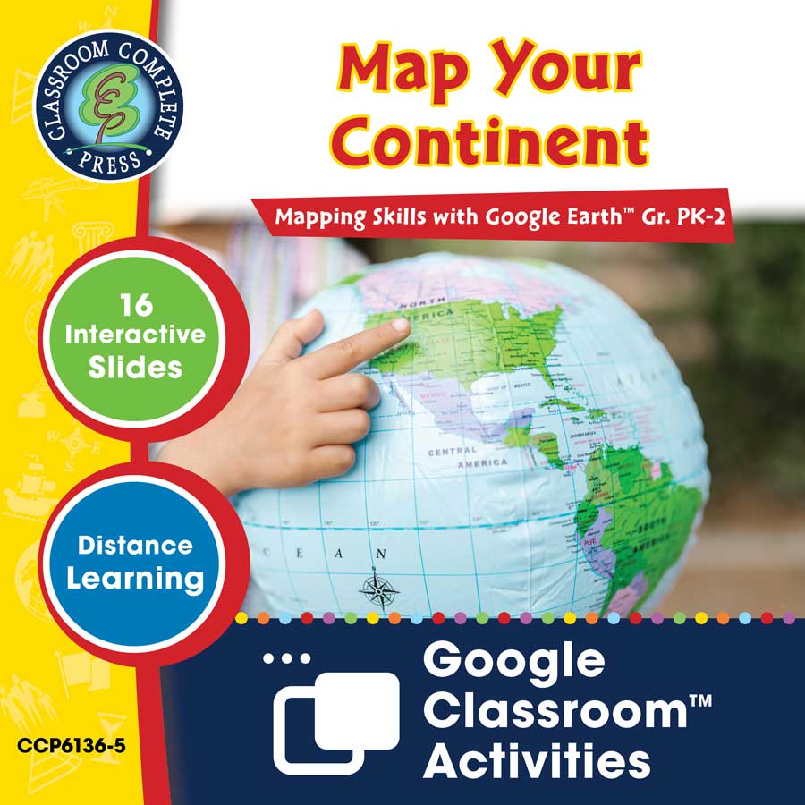 **This is a Google Slides version of the “Map Your Continent” chapter from the full lesson plan Mapping Skills with Google Earth™ for grades PK-2.**